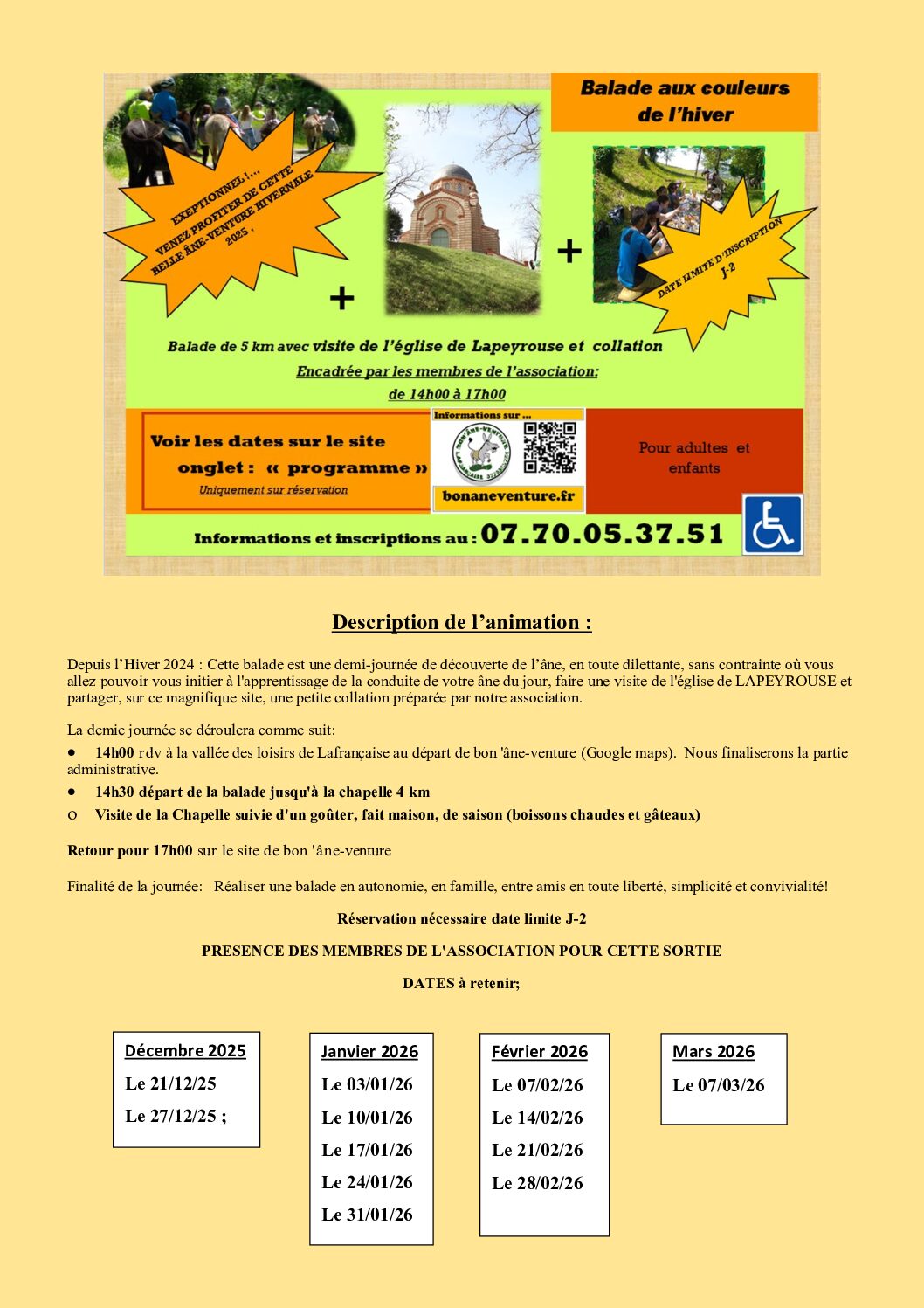 En dehors des périodes ci-dessous, nous étudions vos demandes: Sorties Nature , en groupe , actions de nettoyage de la nature, CLAE, anniversaires, fêtes locales, marchés Gourmands, marchés de Noël, portes ouvertes et toutes autres demandes spécifiques…lien avec notre onglet Nos actions .